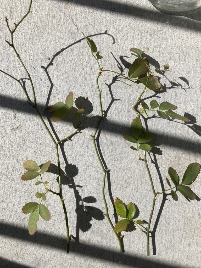 良かったのは、これをナナフシに与えるとよく食べたことだ。他に取ってきた葉は食べなかった。一つも食べなかった。もしこれがなかったら、ナナフシは生き延びられなかっただろう。本当に助かった。この謎の野バラに感謝するしかない。